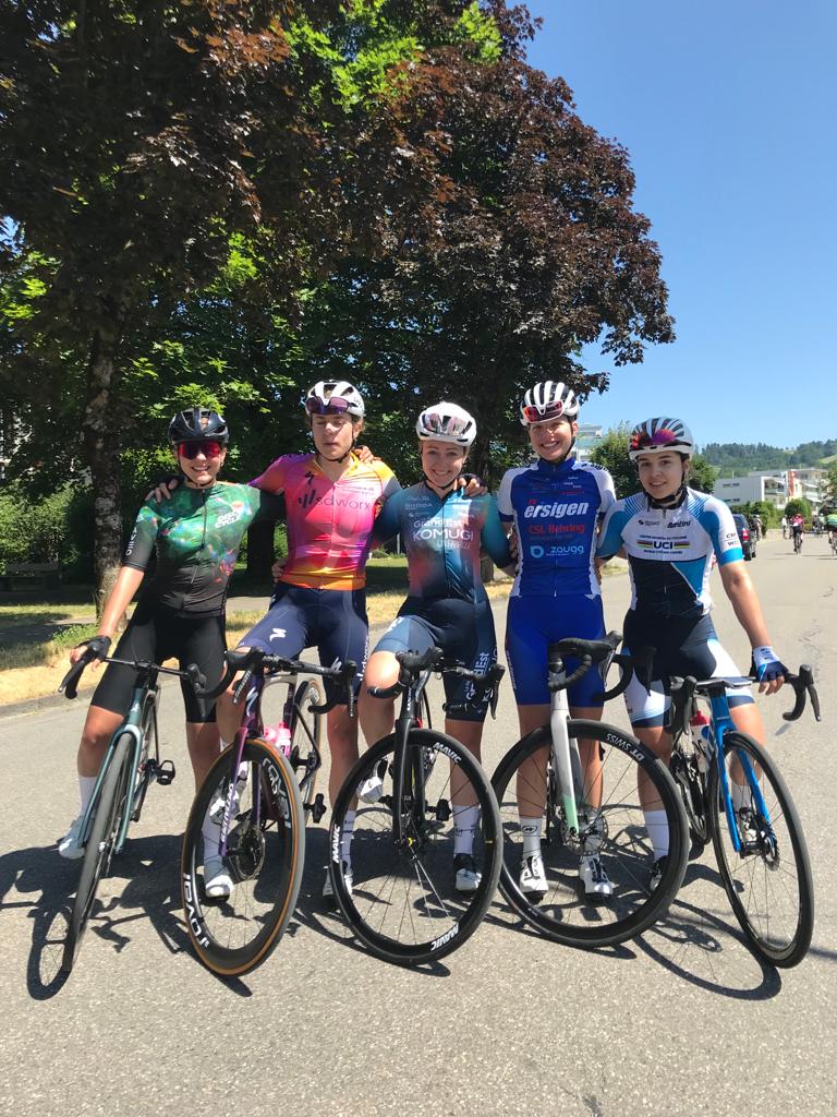 Nach kurzer Erholung standen am Wochenende bereits wieder die Schweizermeisterschaften im Strassenrennen in Wetzikon auf dem Programm. Die Strecke war hart, ein ständiges auf und ab, so dass das Feld der Elite Damen schon bald auseinander und in viele kleine Gruppen aufgeteilt wurden. Marlen vermochte sich immer in der Spitzengruppe zu behaupten und in der letzten von 5 Runden griff sie an, denn sie wollte es nicht auf einen Zielsprint ankommen lassen. So feiert Marlen nach dem Sieg an der Tour de Suisse auch einen Solosieg an der Schweizermeisterschaft und wurde Schweizermeisterin. In einer Verfolgergruppe kämpfte Jasmin Liechti um den Anschluss und beendete das Rennen auf dem starken 10. Rang, gefolgt von Fabienne Buri auf dem 14.Rang, Noelle Ingold (Solothurn) auf dem 22. Rang und Janice Stettler U23 (Ersigen) beendete das Rennen auf dem 23. Rang.