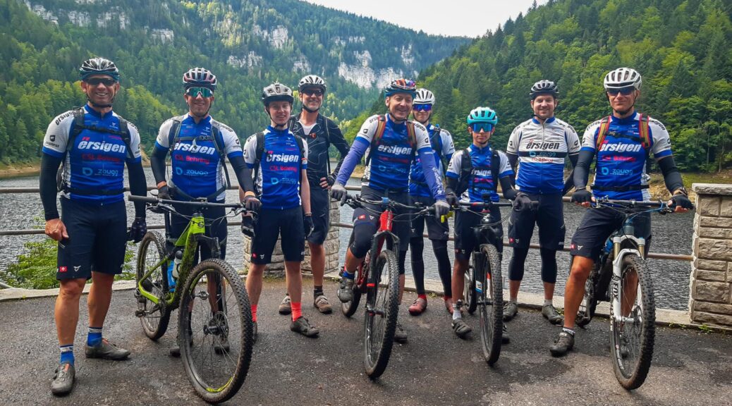 Am 6. August machten sich 9 Ersiger mit dem Zug am Morgen früh auf den Weg nach La Chaux-de-Fonds. Nach dem ersten Kaffee ging es bei noch relativ frischen Temperaturen los. Die Route führte der Schweizergrenze entlang in den Jura. Die Singletrails und Wege am Flussufer des Doubs, auf denen wir grösstenteils unterwegs waren, machten Freude. Vor allem wegen den teils rutschigen Steinen gab es auch die eine oder andere technische Herausforderung, die jedoch alle ohne Unfall meisterten. Das Wetter…