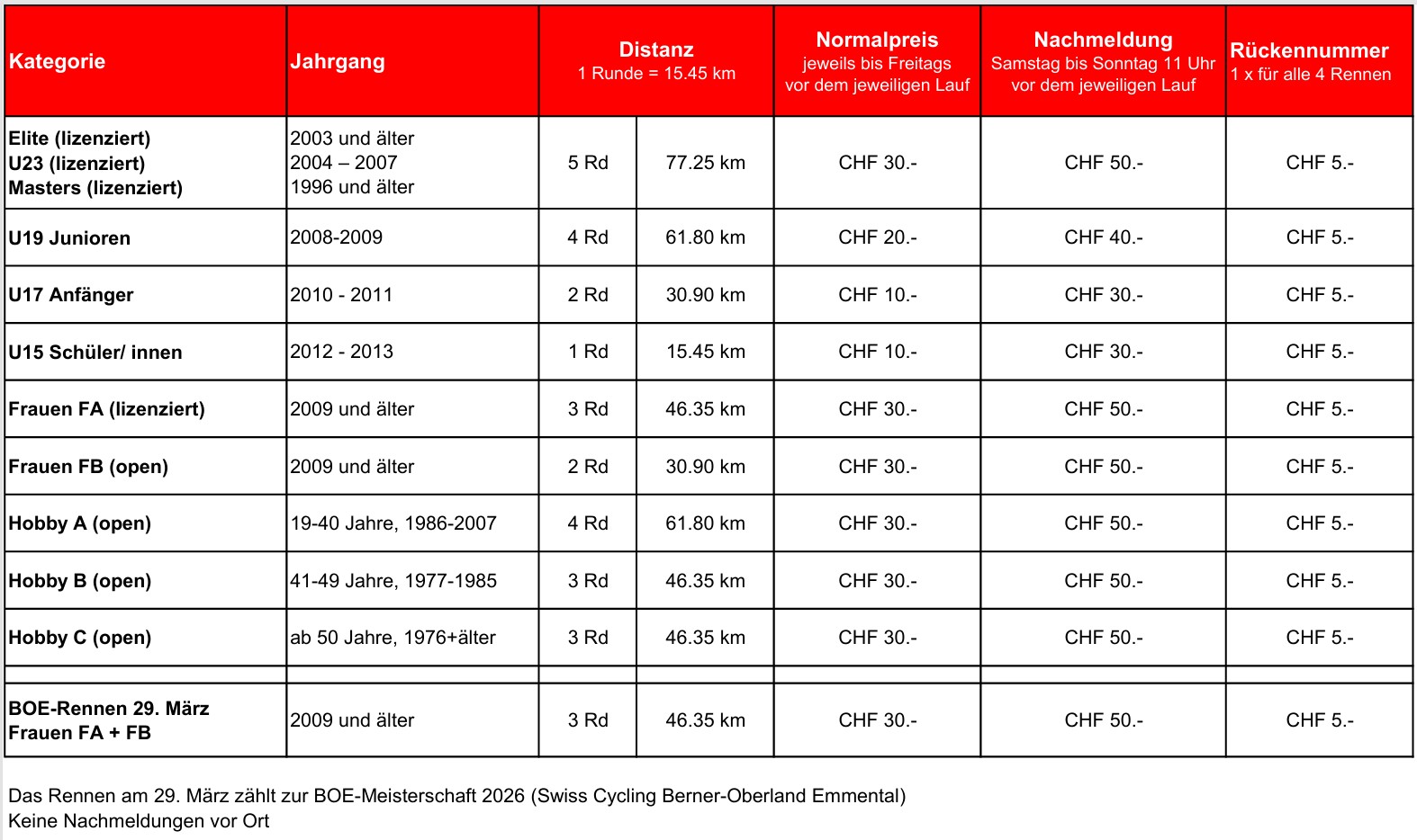 Radsportverband der Region Berner Oberland/Emmental (BOE): www.swiss-cycling-boe.ch